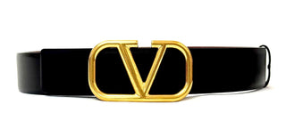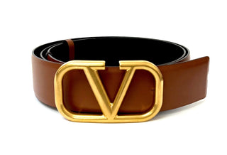Valentino Reversible V Logo Belt in Glossy Calfskin Black/ Brown