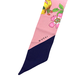 Gucci Printed Silk Twill Neck Bow/ Light Pink Navy