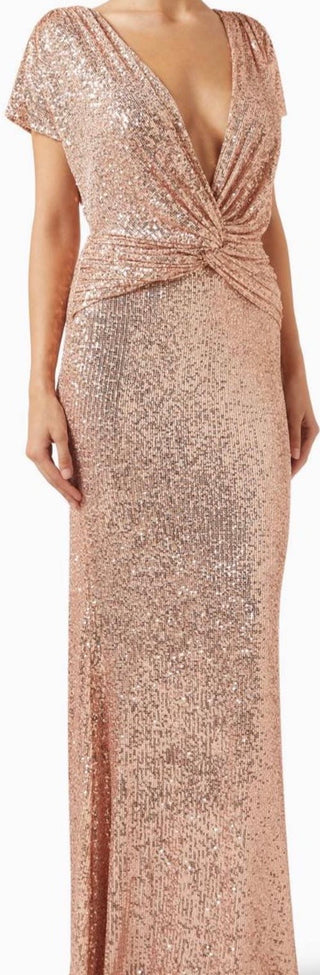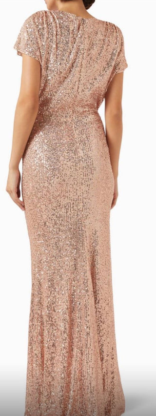 Basix Plunge Neck Sequin Embellished Dress Peach Pink