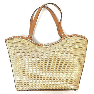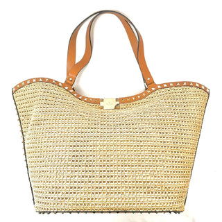 Valentino Garavani Rockstud Leather Trimmed Raffia Tote Bag Large