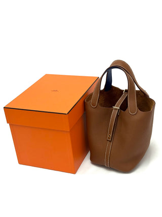 Hermes Picotin Lock 18 Eclat Swift/ Calfskin Clemence In Bi Color Gold and Blue Royal