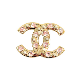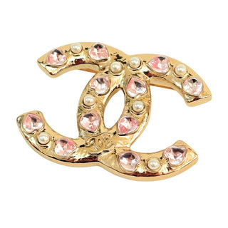 Chanel Pink Resin Bead Pearl Gold CC Brooch Pin