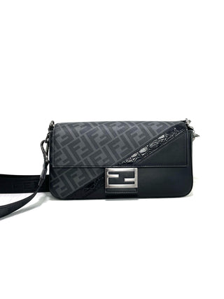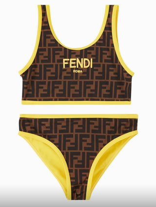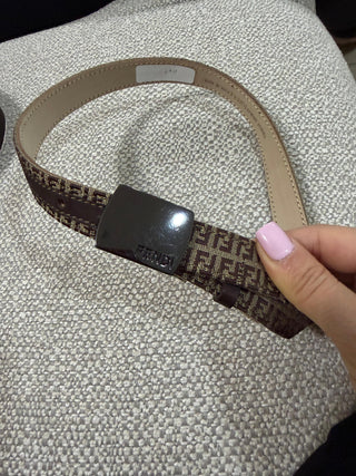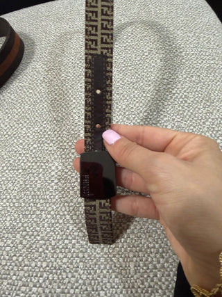 Fendi Brown Black White FF Logo Square Toe Slingback