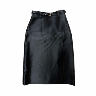 Gucci Black Silk Pencil Skirt with Black Gold GG Belt
