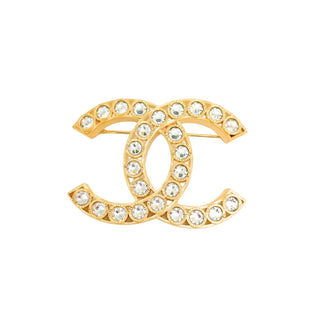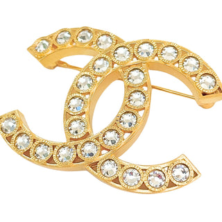 Chanel CC Vintage Gold Pin Brooch Rhinestones