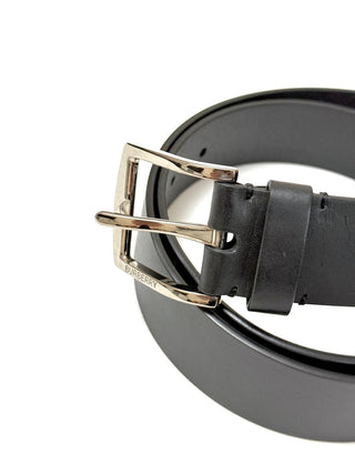 Burberry Black Leather Belt with branded Silver Buckle