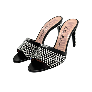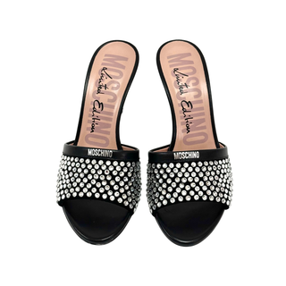 Moschino Limited Edition 85 Crystal Embellished Mules Black