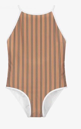Burberry Peach Iconic Stripe Branded Zip Polo Dress